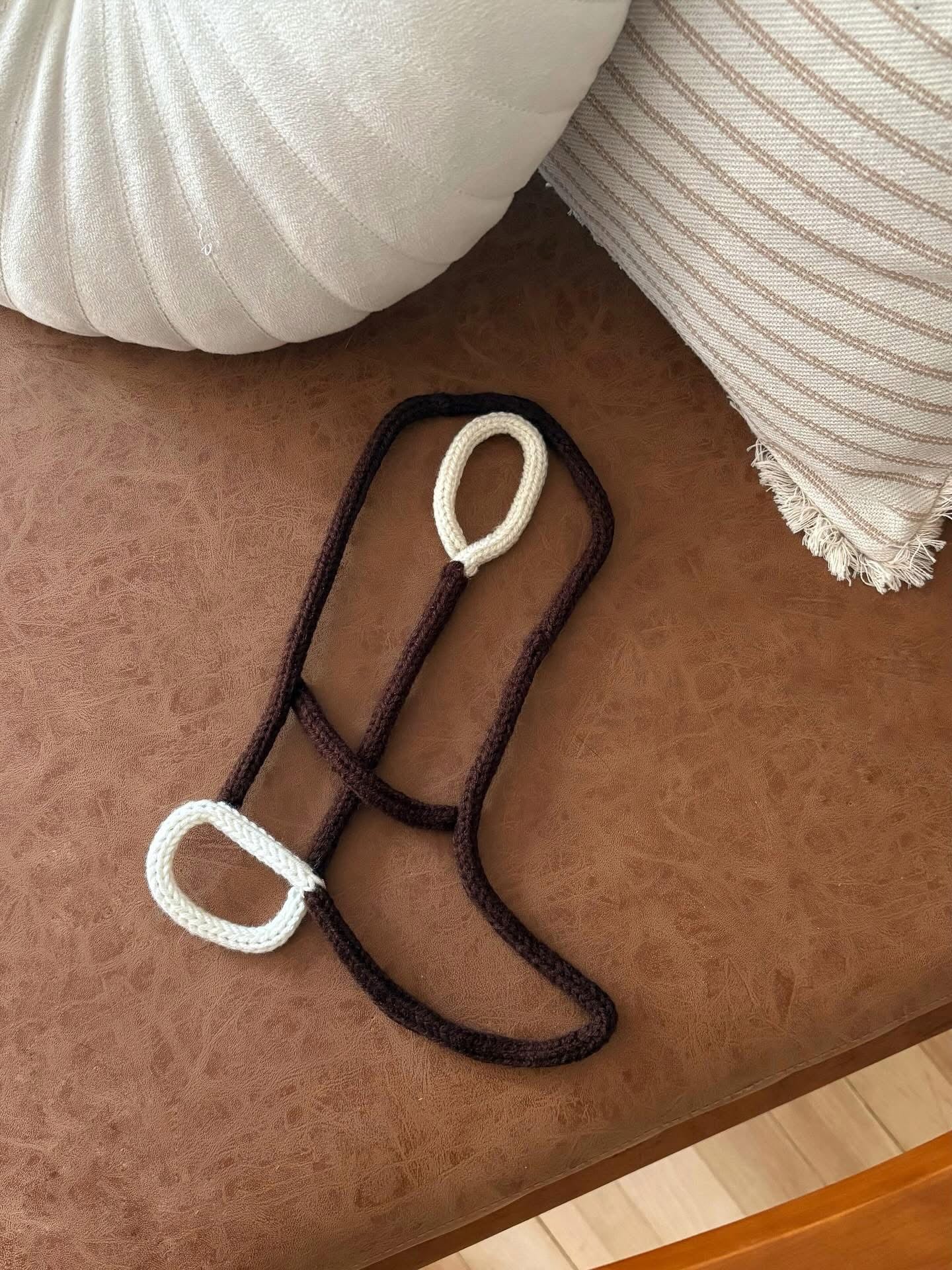 🧶 Création est fabriquée avec un fil d’acier bien solide (mais discret) et une douce corde de laine — juste du beau et du sécuritaire. Chaque corde laine est tissé à la main (oui!). Il est possible de modifier les couleurs, vous n’avez qu’à nous écrire 🤗
